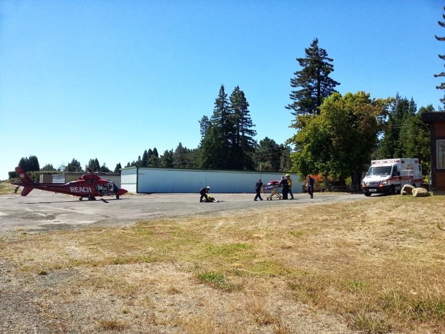 REACH waiting to transport a car accident victim.